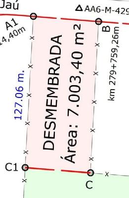 VENDO TERRENO, EXCELENTE ÃREA COM 7.003,40 M².LOCALIZAÇÃO PRIVILEGIADA.FRENTE PARA A RODOVIA ESTADUAL DEPUTADO AMAURI BARROSO DE SOUSA ( SP-304).RODOVIA JAÚ / MINEIROS DO TIETÊ / DOIS CÓRREGOS.