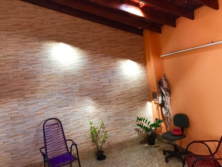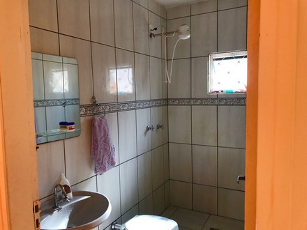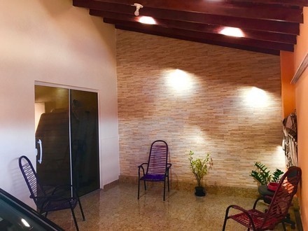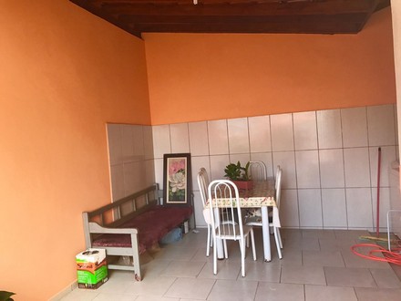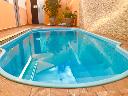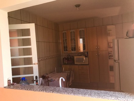 Casa com 2 quartos, sala, cozinha, 2 banheiros, área de serviço, garagem p/2 carros, piscina e área pra churrasco.
