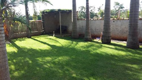 Chácara com 2 quartos sendo 1 suite, sala, cozinha, área de serviço, garagem p/vários carros, 2 banheiros, área de churrasco c/churrasqueira e forno a lenha, piscina, pomar.