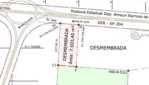 VENDO TERRENO, EXCELENTE ÃREA COM 7.003,40 M².LOCALIZAÇÃO PRIVILEGIADA.FRENTE PARA A RODOVIA ESTADUAL DEPUTADO AMAURI BARROSO DE SOUSA ( SP-304).RODOVIA JAÚ / MINEIROS DO TIETÊ / DOIS CÓRREGOS.