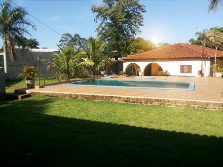 Chácara com 4 quartos sendo 2 suÃtes, 3 salas, cozinha, 3 banheiros, área de serviço, edÃcula c/2 banheiros, 2 piscinas, poço artesiano.
