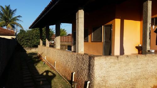 Chácara com 2 quartos, sala, cozinha, área de serviço, garagem pra vários carros, 2 banheiros, churrasqueira e área de lazer.